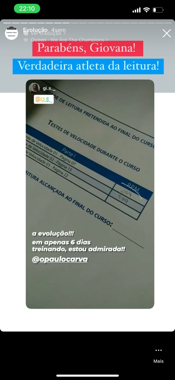 A Giovana destravou a mecânica de leitura e hoje é capaz de ler 7 livros por mês.