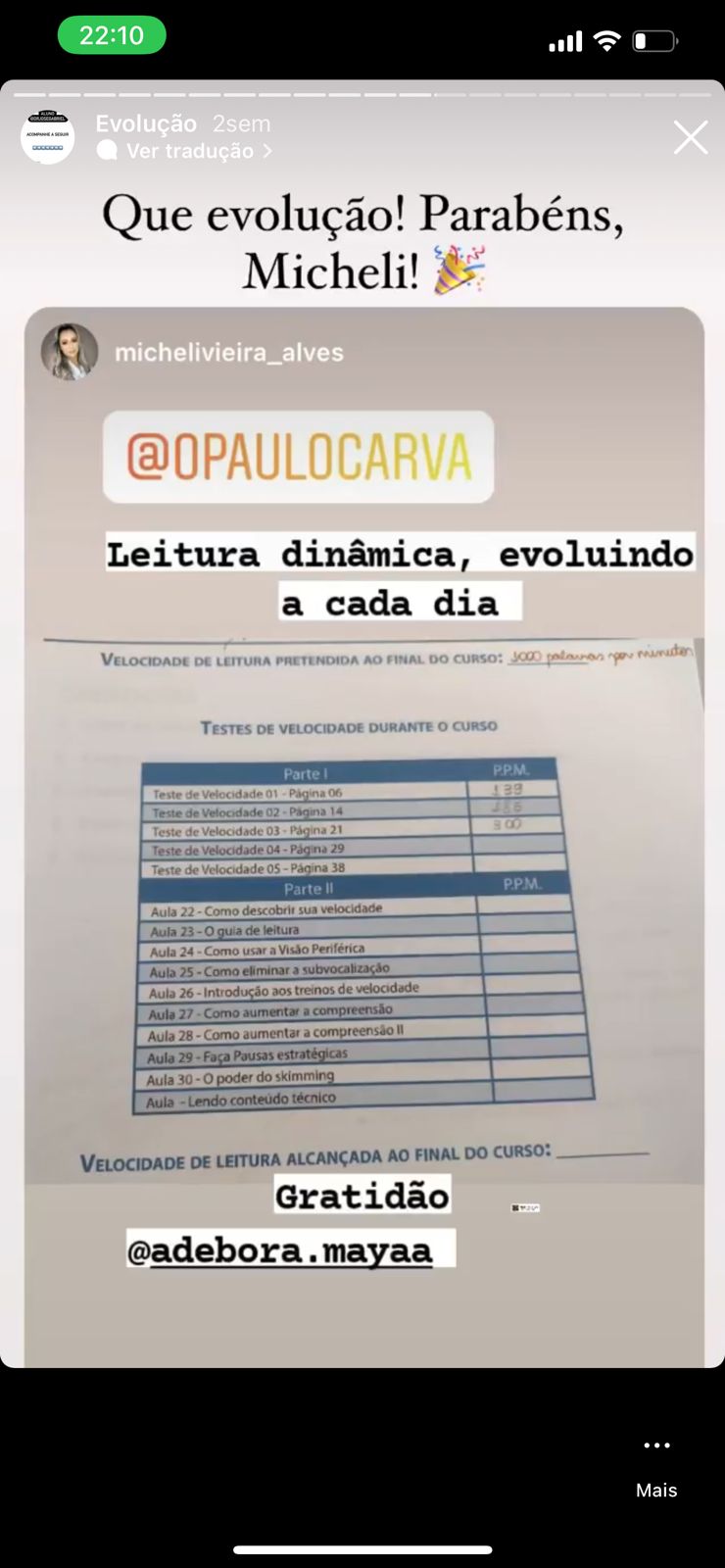 O Luiz Paulo se tornou servidor Federal e agora estuda para concursos jurídicos e relata que seus estudos decolaram depois que aprendeu a Leitura Dinâmica.Diz que não começa seus estudos sem antes fazer os treinos de Leitura Dinâmica, pois sente que sua velocidade de leitura e retenção aumentam de maneira impressionante.
